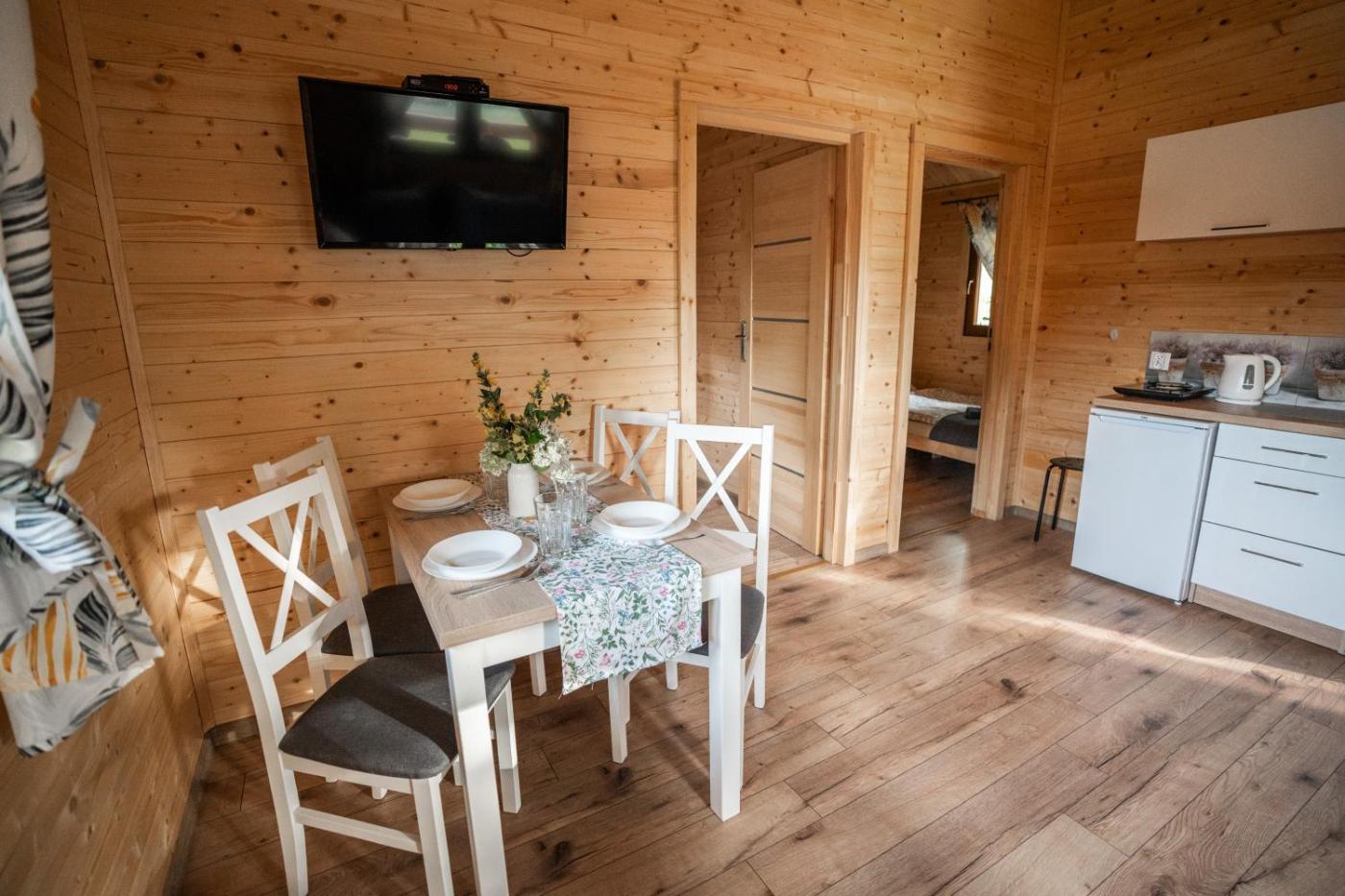 Domek z 2 sypialniami. Featuring a private entrance, this chalet comprises 1 living room, 2 separate bedrooms and 1 bathroom with a shower and a hairdryer. Guests will find a stovetop, a refrigerator, kitchenware and a microwave in the well-fitted kitchen. The chalet also provides guests with a barbecue. Boasting a terrace with garden views, this chalet also provides a tea and coffee maker and a flat-screen TV with cable channels. The unit offers 3 beds. Domek - 6 osobowy. Powierzchnia pokoju ok.: 35 mkw.