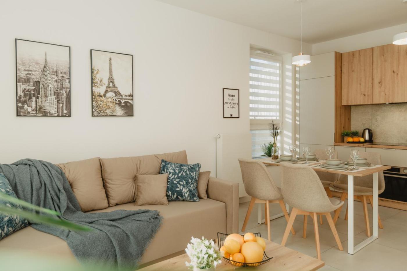 Apartament typu studio. In the well-fitted kitchenette, guests will find a stovetop, a refrigerator, a dishwasher and kitchenware. The apartment offers a washing machine, a private entrance, a balcony with city views as well as a private bathroom boasting a shower. The unit has 1 bed. Apartament - 2 osobowy. Powierzchnia pokoju ok.: 30 mkw.